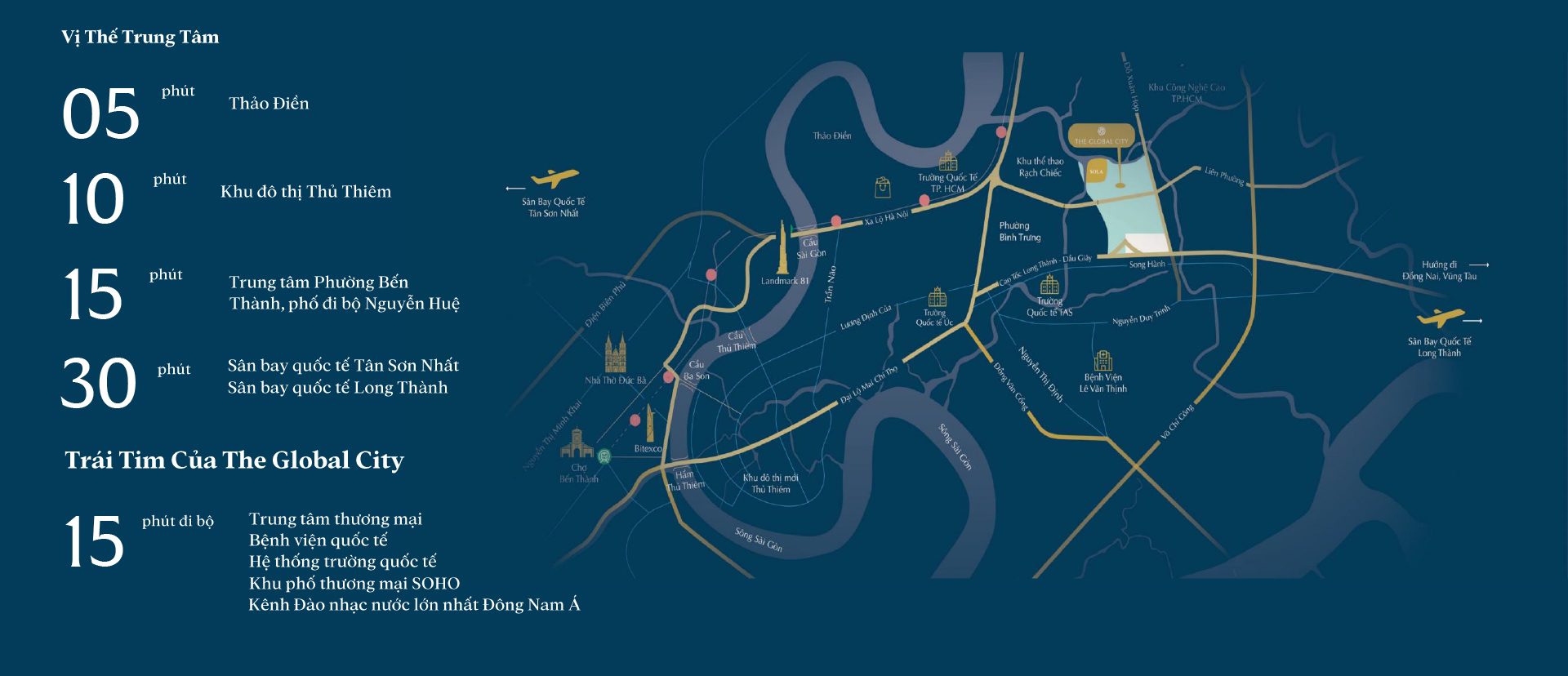 - 30 phút đến sân bay Tân Sơn Nhất